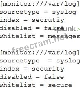 Consider the scenario where the /var/log directory contains the files secure, messages, cron, audit. A customer has created the following inputs.conf stanzas in the same Splunk app in order to attempt to monitor the files secure and messages: Which file(s) will actually be actively monitored?