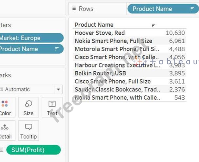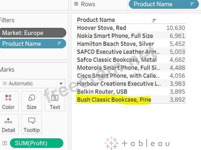 Drop the Product Name to the filters and Select Top 10 based on Sum of Profit.