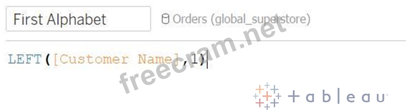 Create a Calculation to get the first alphabet of the customer name. Graphical user interface, text, application Description automatically generated Now drop the First Alphabet field to Rows and Quantity field to the Text on the Marks card. Change the aggregation from SUM to AVG. Your view will look like this: