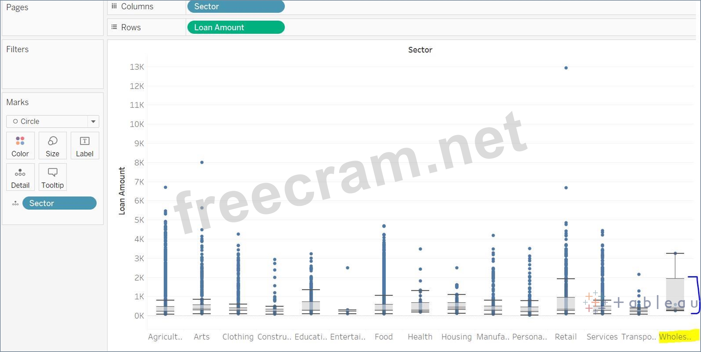 Create a box plot using Sector and Loan amount. Chart, box and whisker chart Description automatically generated The IQR is maximum for the Wholesale sector.