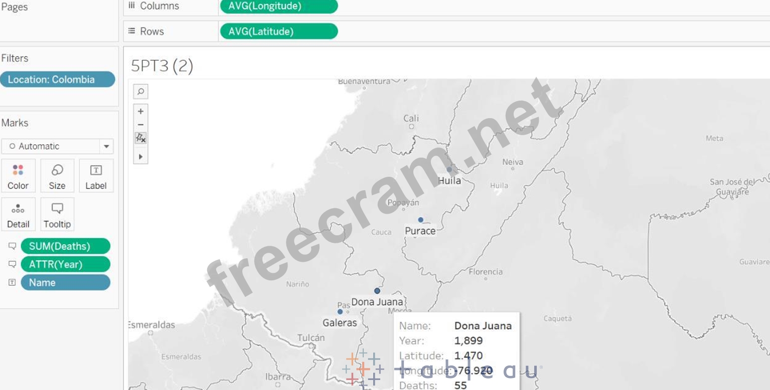 Drop the Deaths and Year fields to the Tooltip. Now your view looks like this: