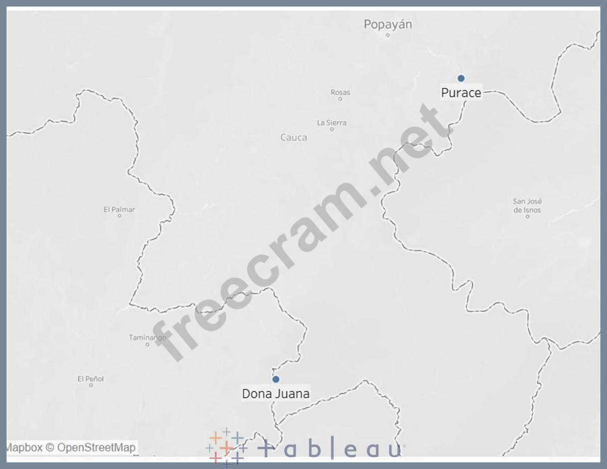 Zoom-in the map, you will find Purace is the nearest one in the Popayan city and Dona Juana was having 55 deaths.