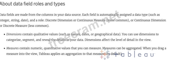 When you connect to a new data source, Tableau assigns each field in the data source as dimension or measure in the Data pane, depending on the type of data the field contains. You use these fields to build views of your data.