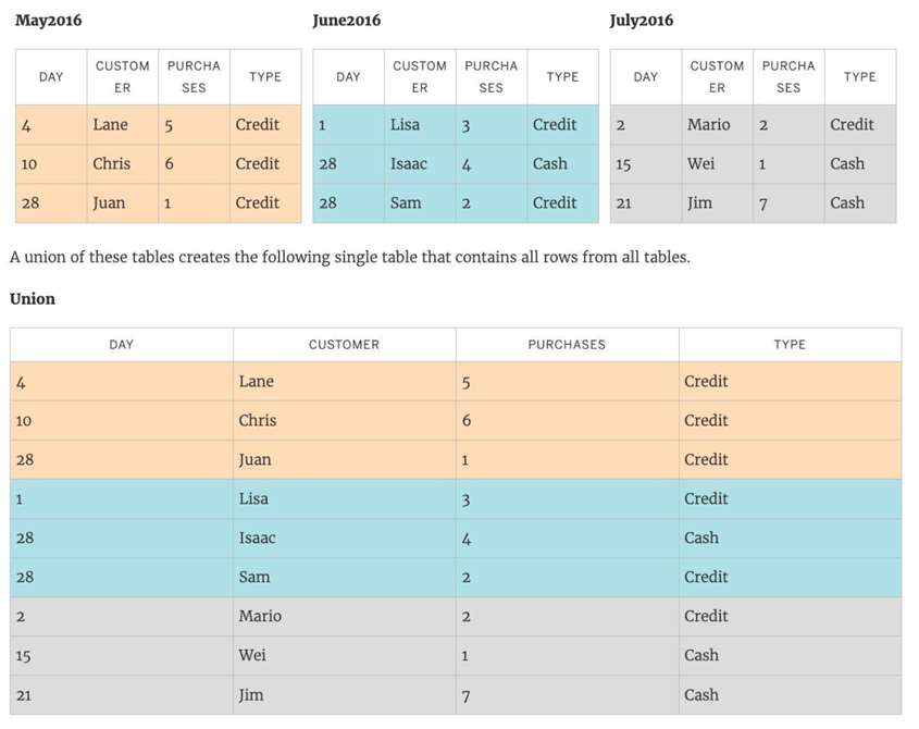 ______________ is a method for appending values (rows) to tables. You can use this method if both tables have the same columns. The result is a virtual table that has the same columns but extends vertically by adding rows of data.