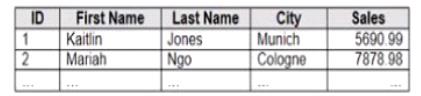 You company has two divisions located in the United States and Germany Bach division has a separate database. The following is a sample of the sales data for the division in the United States.