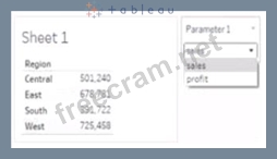 1 - Create a parameter that has list string values of profit and sales. Select Show Parameter 2 - Create a calculated field that uses the following formula:.... 3 - Drag the calculated field to Detail on the Marks card and add tRegion to the Columns sheif.