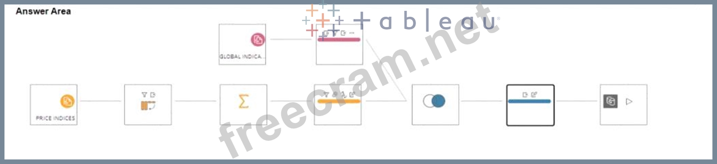 You have a Tableau Prep flow that joins a dataset named Global Indicators to a dataset named Price Indices.