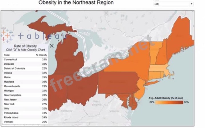 To identify which elements are floating on a dashboard, you can look for a gray border around them when you select them. Alternatively, you can open the Layout pane and see which elements have a pin icon next to them. The pin icon indicates that the element is floating and can be moved freely on the dashboard. Based on these criteria, the state filter and the color legend are floating elements on the dashboard. Reference: https://help.tableau.com/current/pro/desktop/en-us/dashboards_organize_floating_layoutcontainers.htm https://help.tableau.com/current/pro/desktop/en-us/dashboards_create_layouts.htm