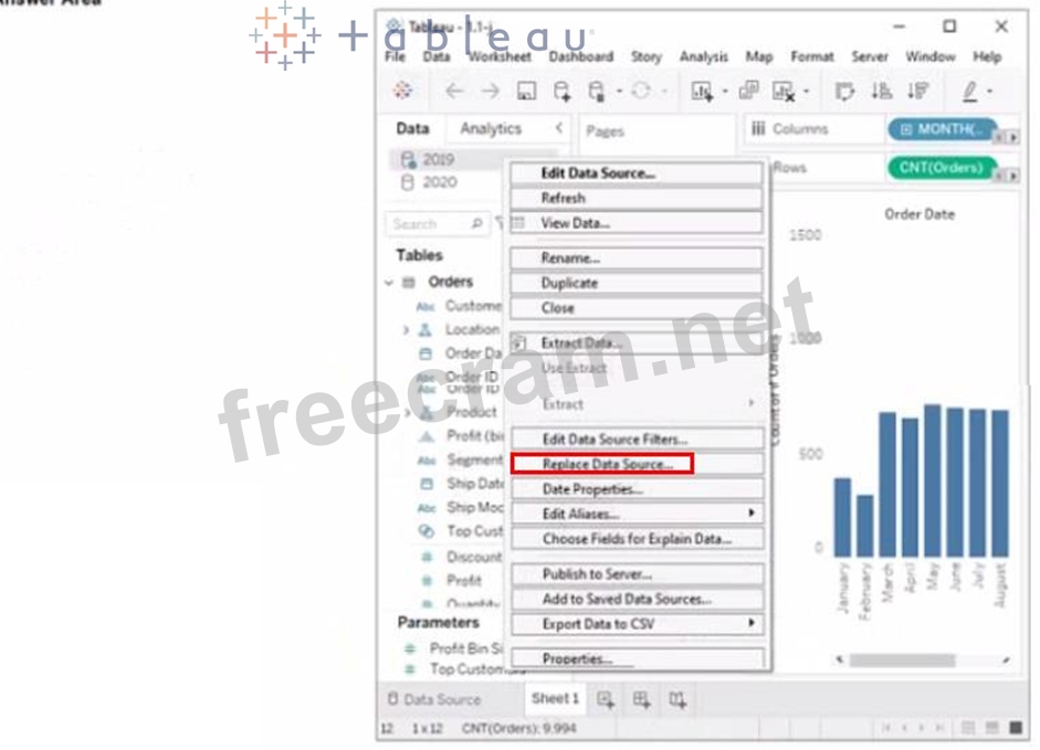 You have two data sources that use the same schema One data source contains order data from 2019 and the other data source contains order data from 2020.