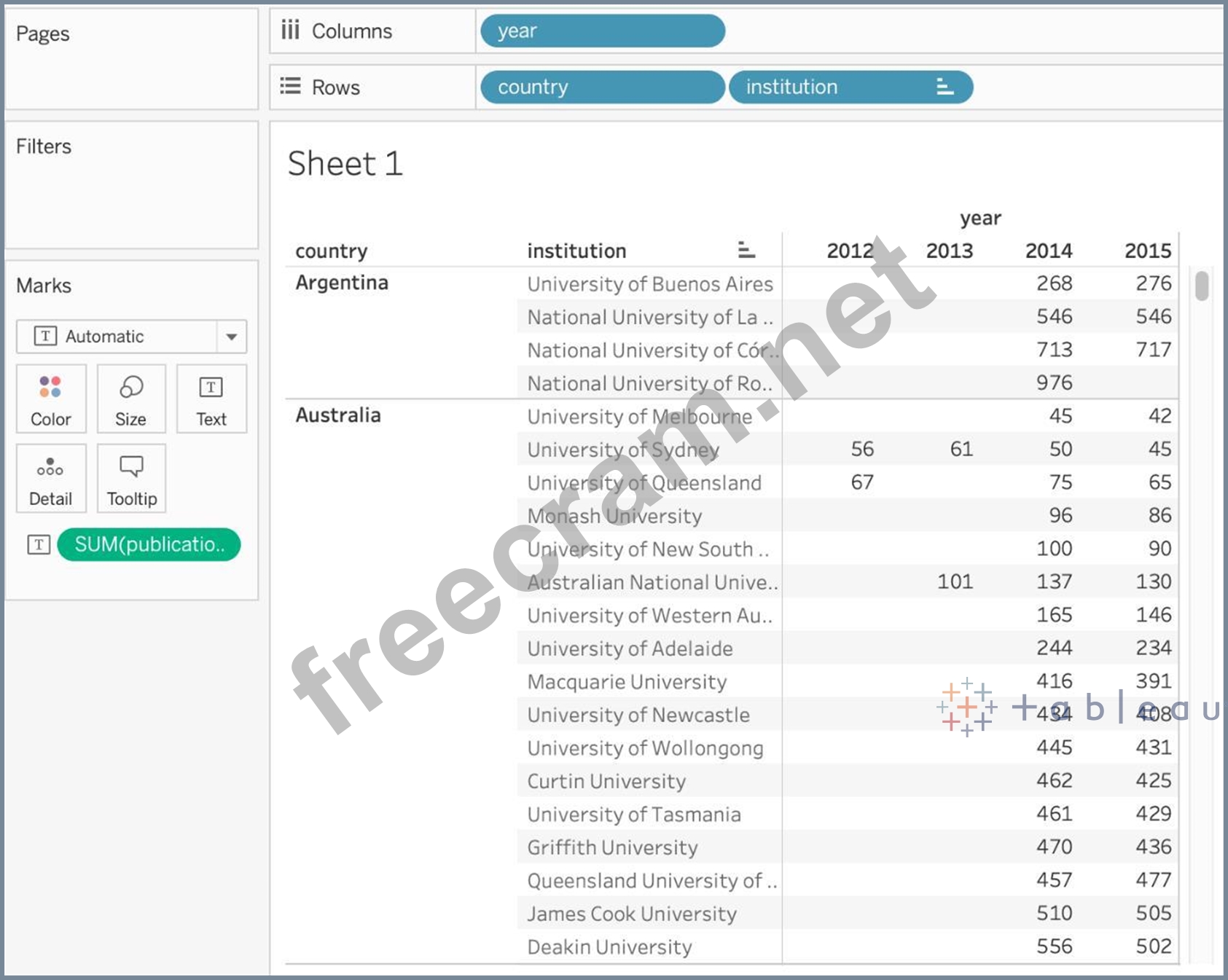 Question 26: Using the cwurData table, create a cross-tab showing the num...