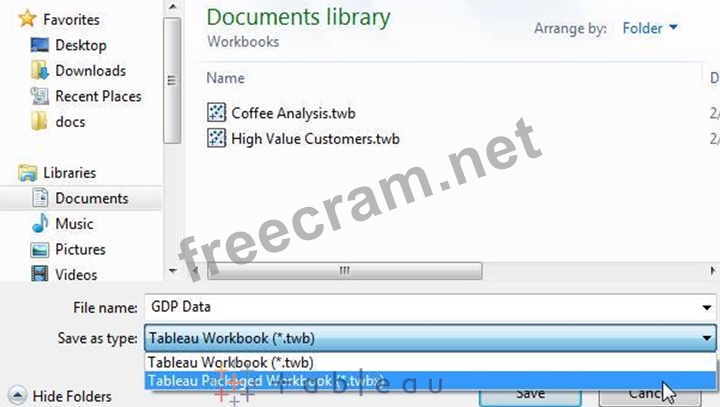 3)Select Tableau Packaged Workbooks on the Save as type drop-down list.