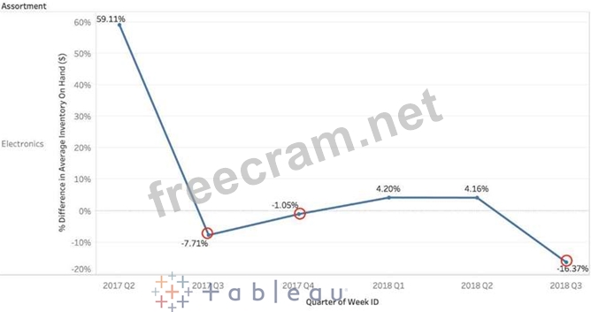 How many quarters did the Electronics Assortment show a negative percent difference in the Average Inventory On Hand?