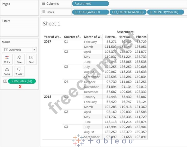 Question 46: Using the Time Series table, create a cross-tab showing sale...