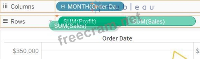 In this example, the Sales axis is the secondary axis and the Profit axis is the primary axis.