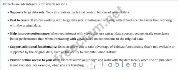Question 21: Which of the following is a benefit of using a Tableau Data ...