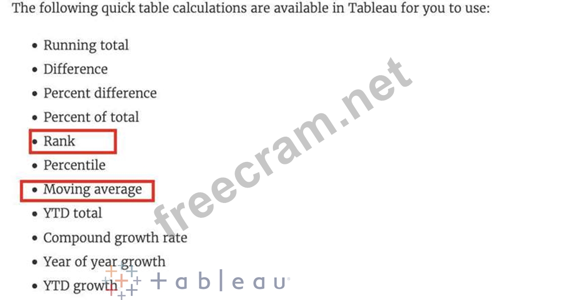 Which of the following calculations DO NOT need a quick table calculation?