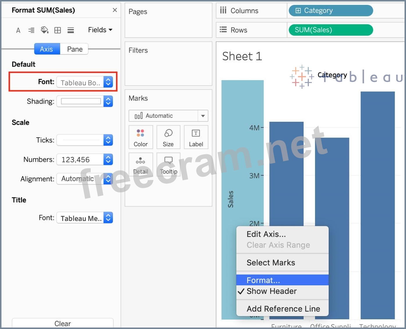 How can you format an axis as Bold in Tableau?