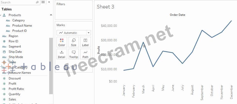 In this example, the Sales axis is the secondary axis and the Profit axis is the primary axis.