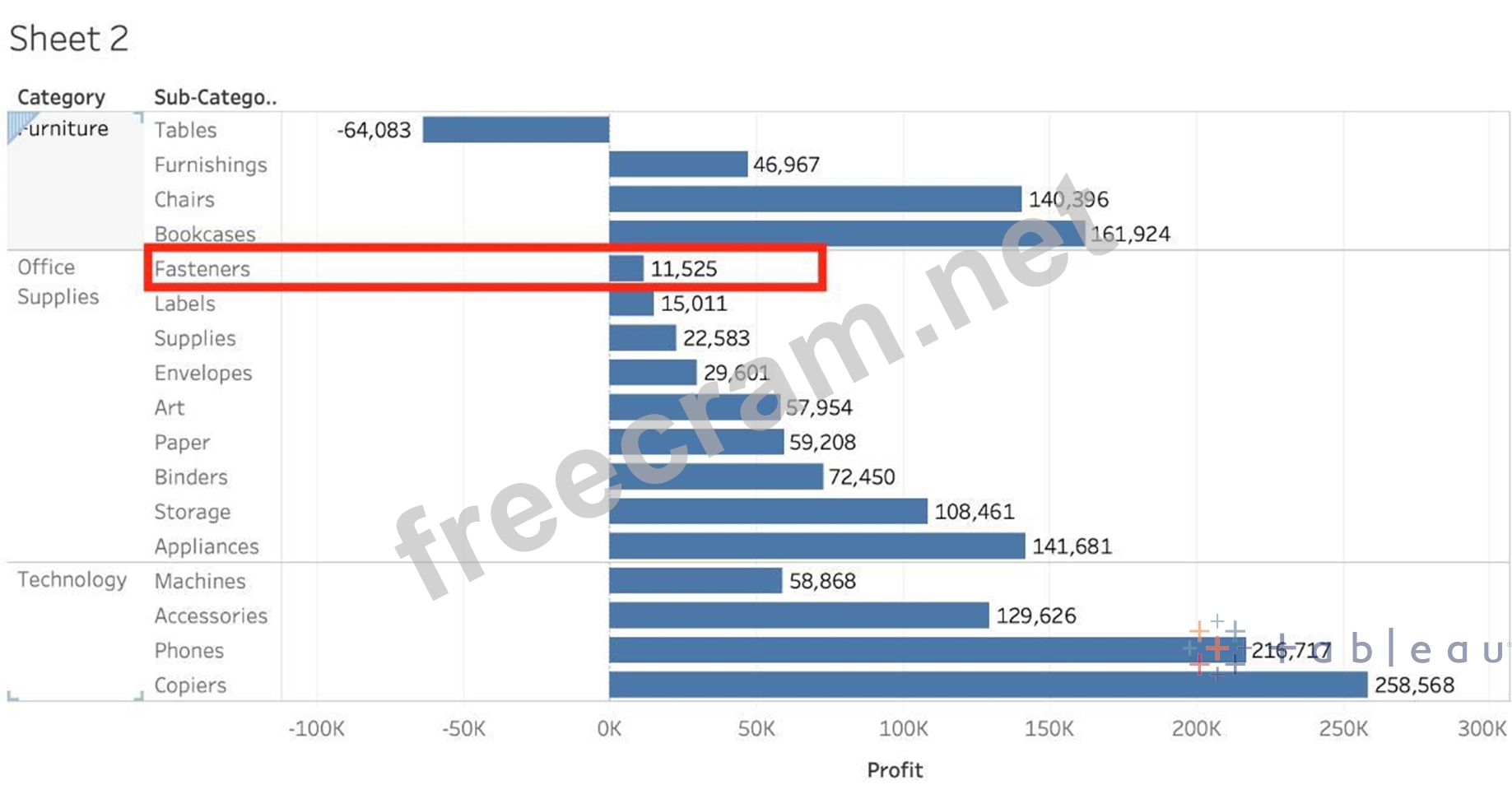 Question 43: Which Sub-Category had the least Profit in the Office Suppli...