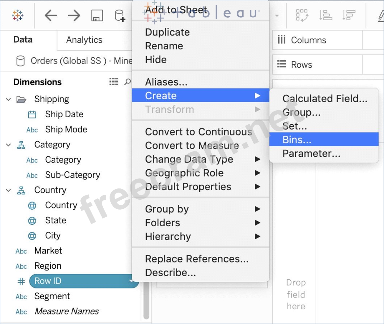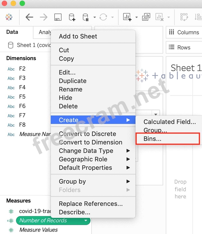 True or False : Bins can be created on dimensions