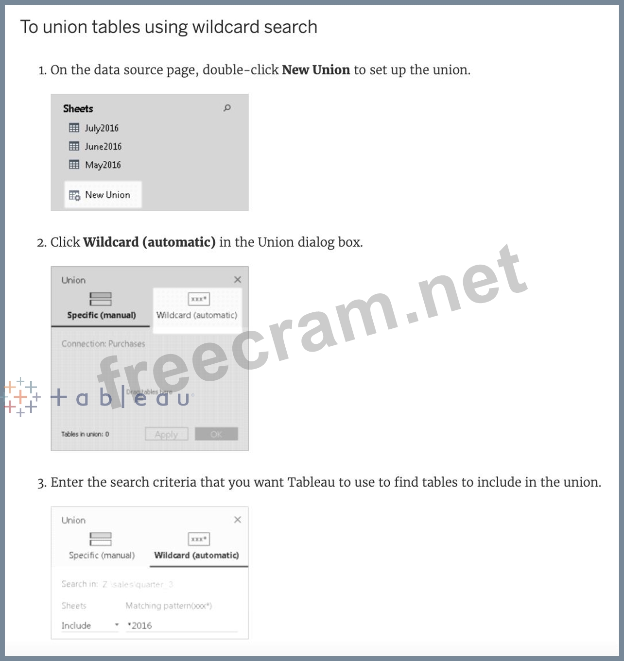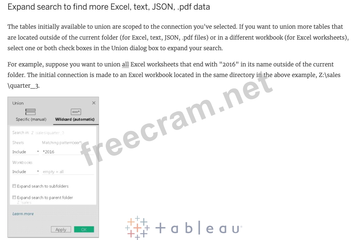When working with Excel, text file data, JSON file, .pdf file data, you can use _________________ to union files across folders, and worksheets across workbooks. Search is scoped to the selected connection.