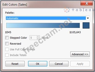 Question 32: When you drop a continuous field on Color, Tableau displays ...