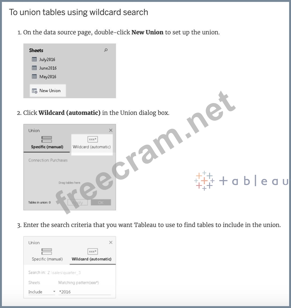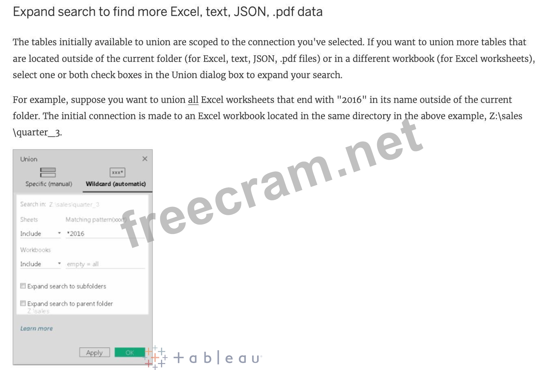 When working with Excel, text file data, JSON file, .pdf file data, you can use _________________ to union files across folders, and worksheets across workbooks. Search is scoped to the selected connection.
