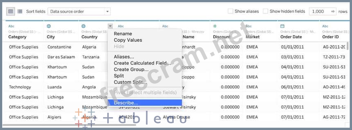 Question 13: You can use the __________________ in Tableau to clean / org...