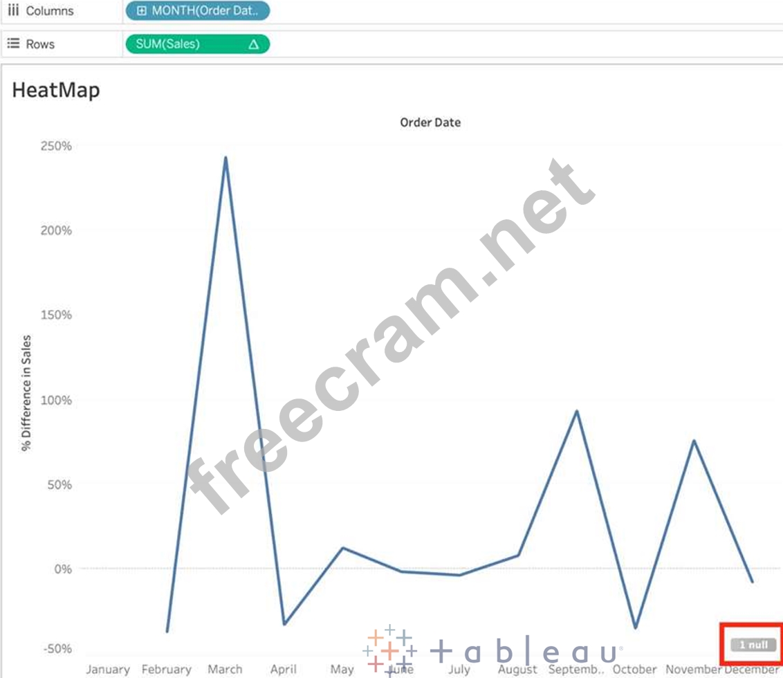 If you use a percent difference Quick Table Calculation, what value will be the first data value?