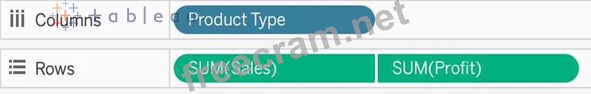 1) Drag Product Type to the column shelf, and Sales and Profit to the Row shelf: