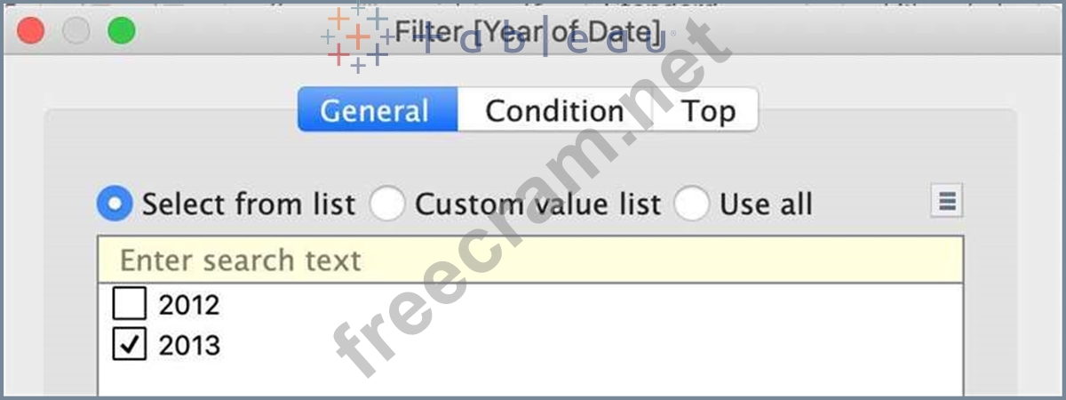 2) Now, to focus on 2013, drag Date to the filter shelf and select only 2013: