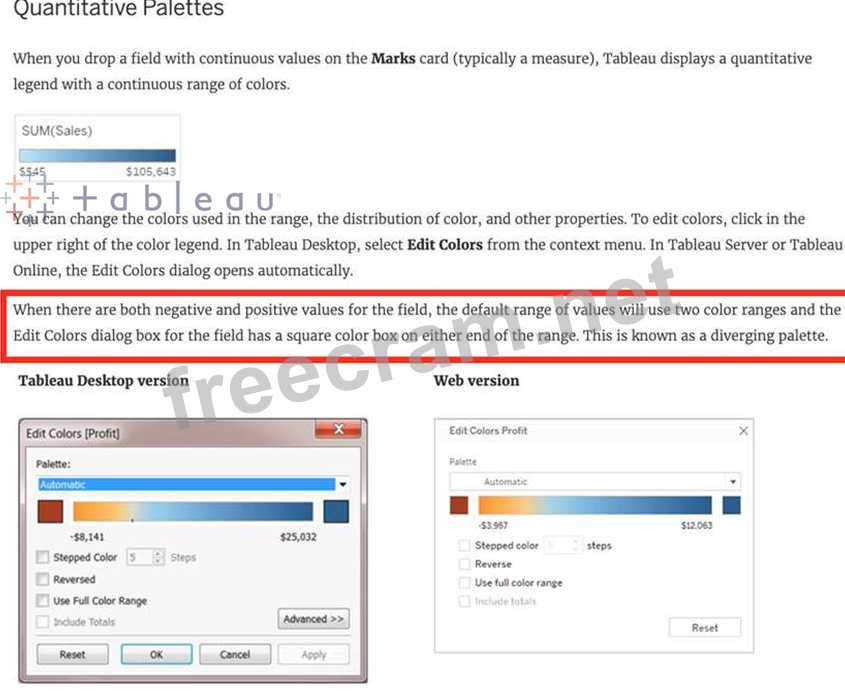 Question 91: When you drop a continuous field on Color, Tableau displays ...