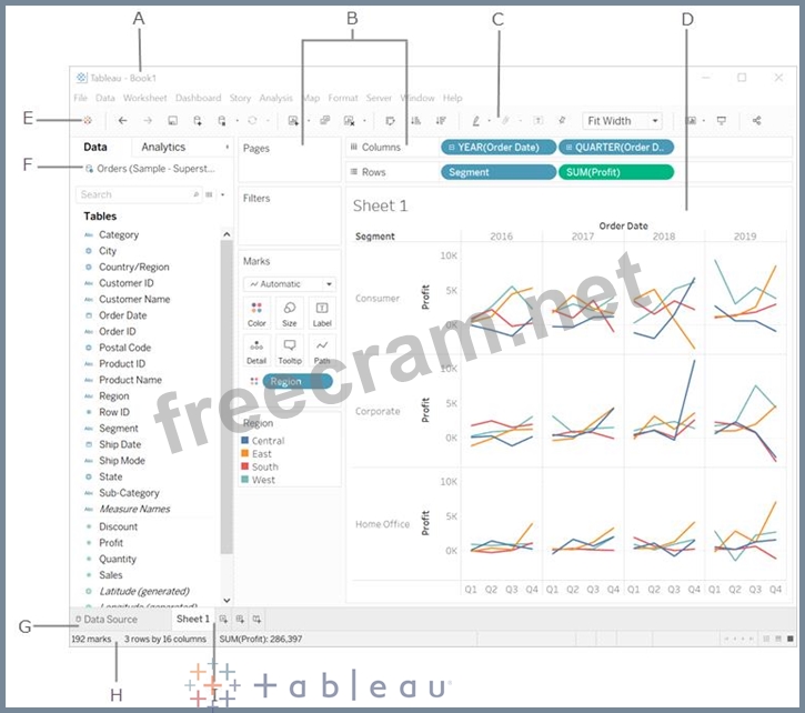 You clicked Sheet 1 from the data source page, and now you have opened the Tableau Desktop workspace as shown above. What is the main thing that you do here?