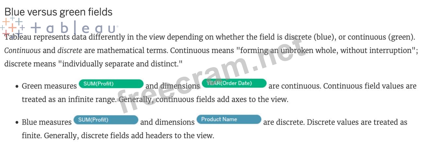Question 42: How do you identify a continuous field in Tableau?...