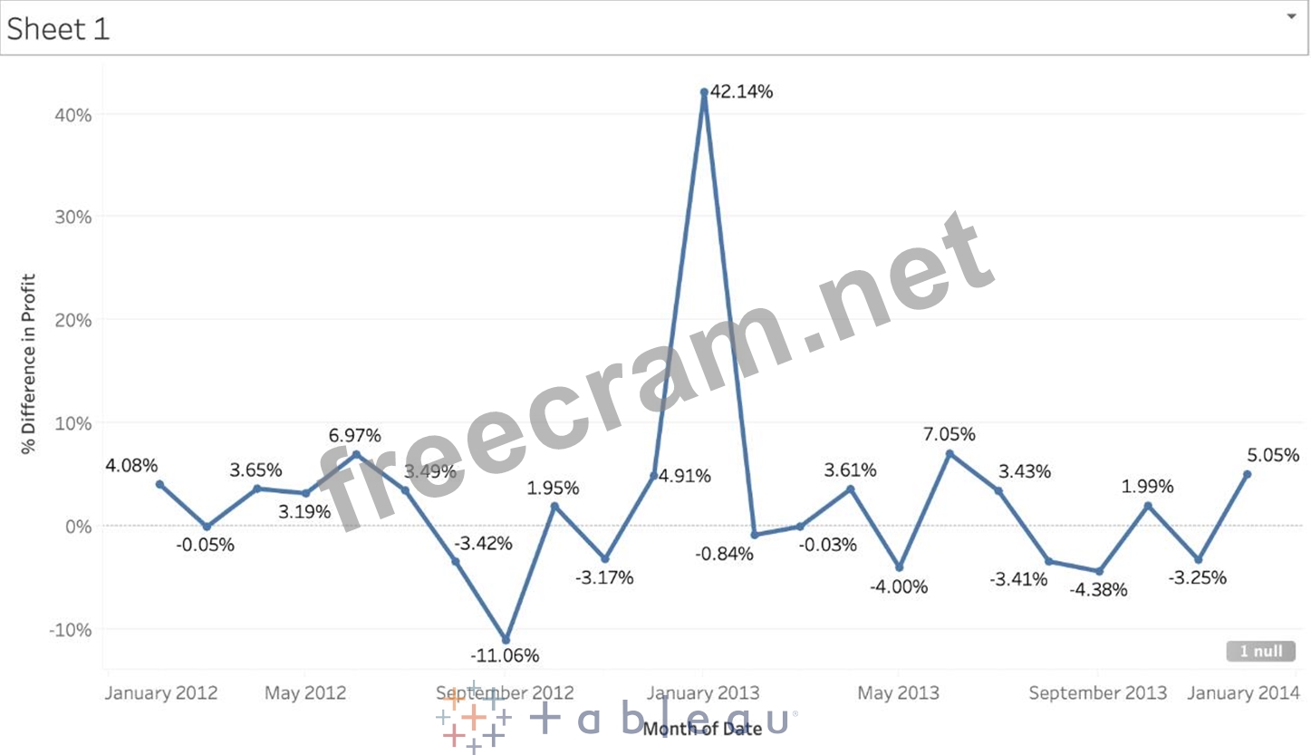 Using the CoffeeChain table, create a chart to see the monthly Percent difference change in Profit, from the beginning of 2012 to the end of 2013. How many months saw a Negative percent difference in Profit?
