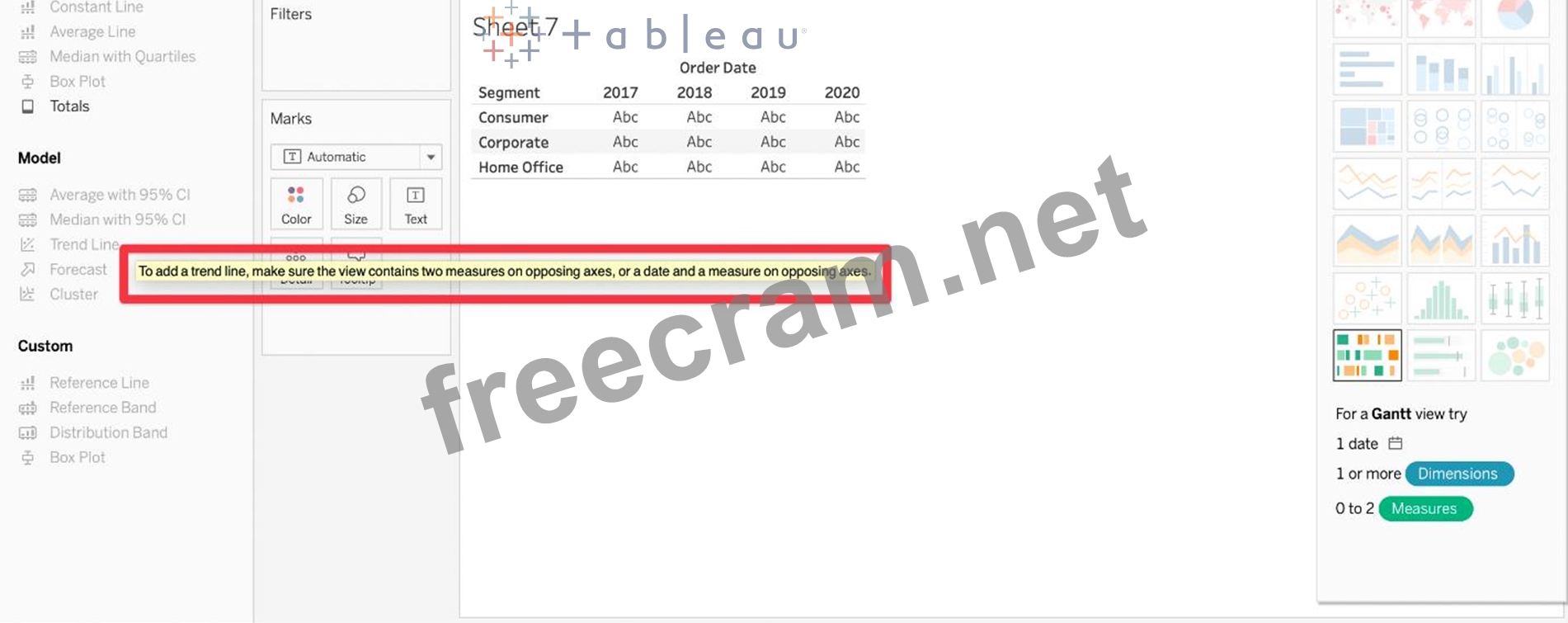 Question 47: When you drop a continuous field on Color, Tableau displays ...