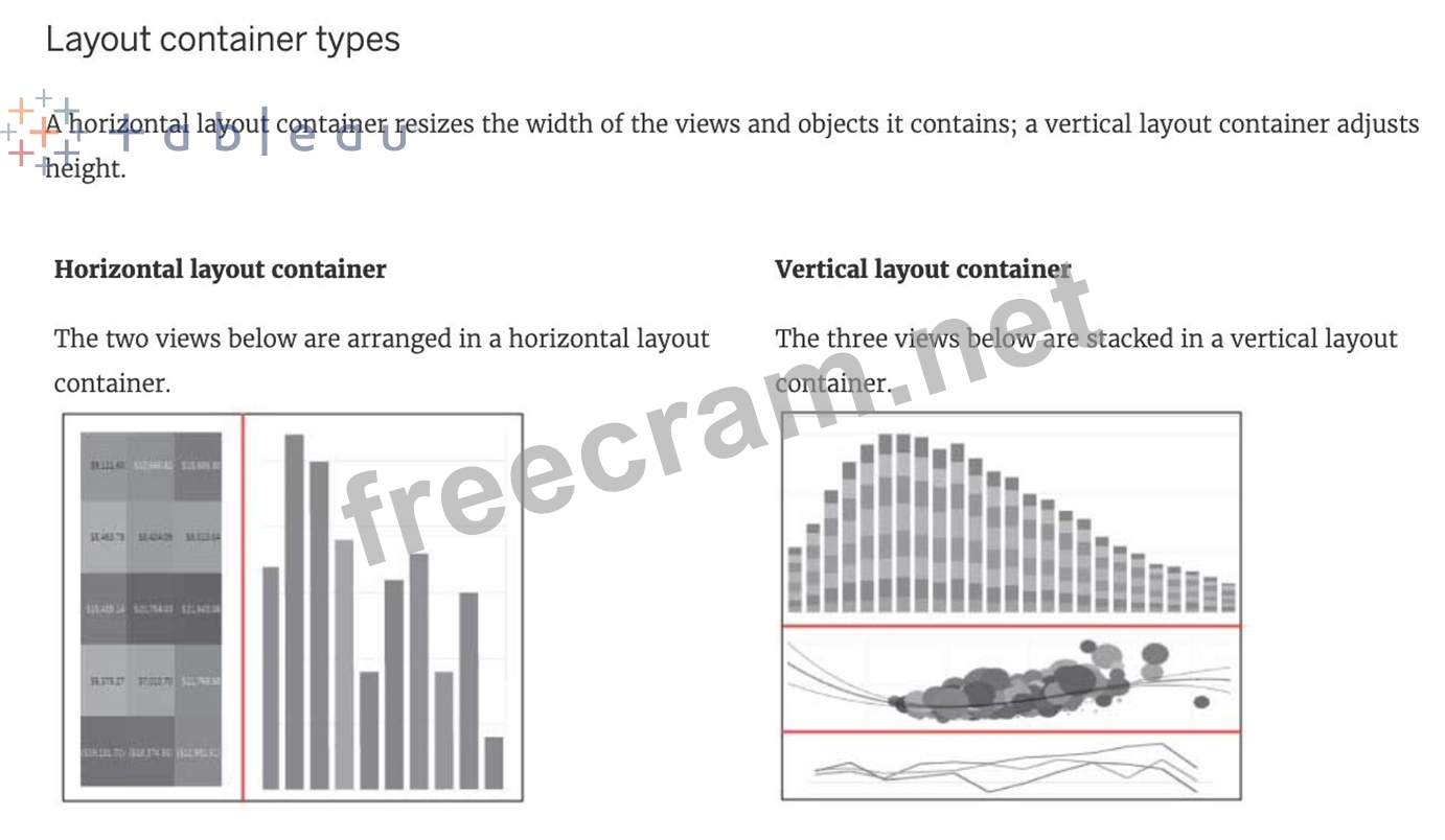Which of the following are valid Layout Container types when using Dashboards in Tableau?