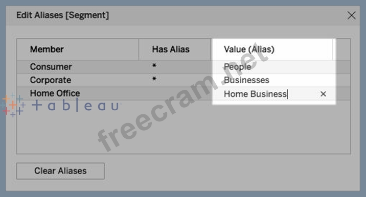 You can create _______________ for members in a dimension so that their labels appear differently in the view.