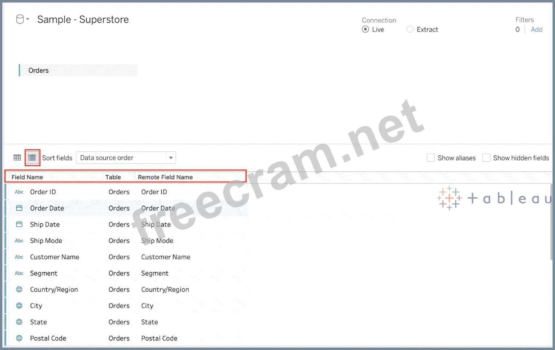Question 29: You can use the __________________ in Tableau to clean / org...