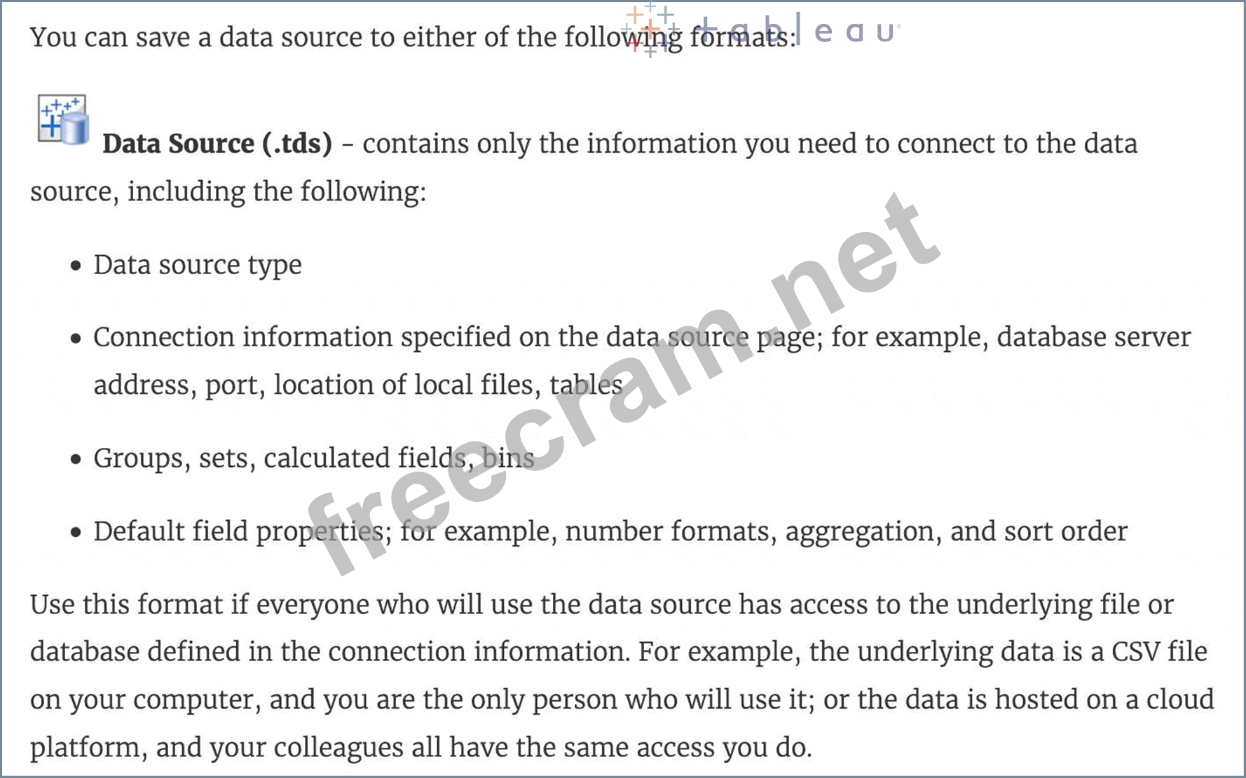 Question 52: A Tableau Data Source File (.tds) contains which of the foll...