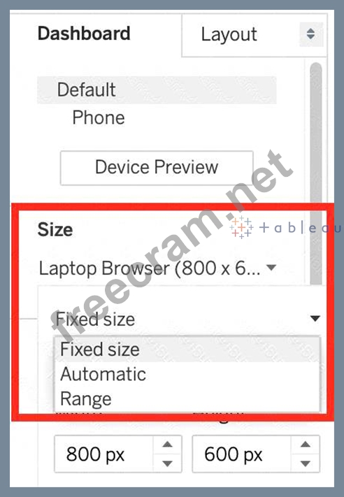 Which of the following are valid Dashboard size options?