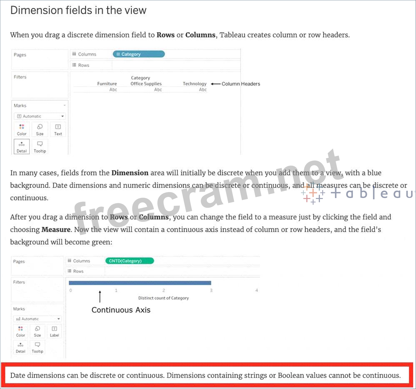 Dimensions containing ____________ and ____________ values cannot be continuous.