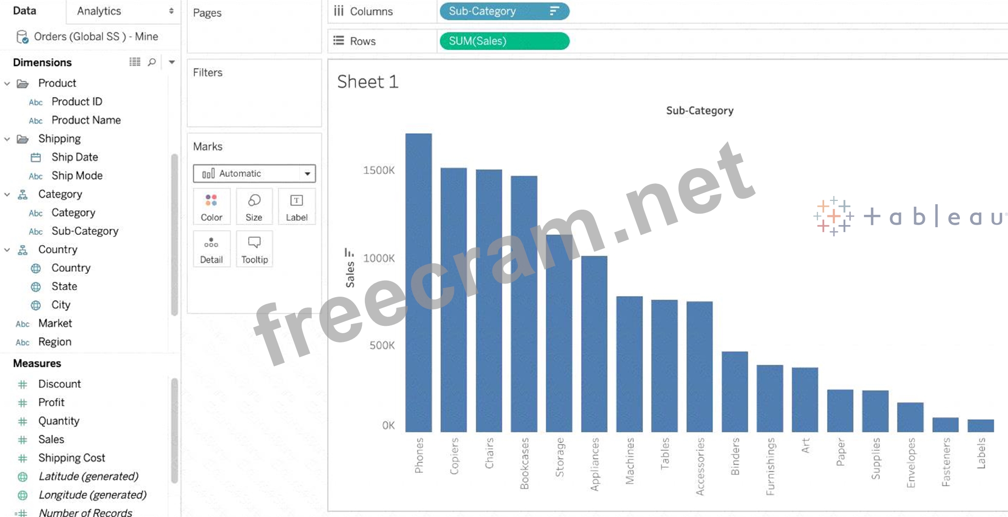 Suppose you create a bar chart by dragging a dimension to the Column shelf and a measure to the Rows shelf.