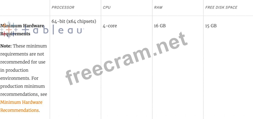 What is the minimum amount of RAM recommended for any production use of Tableau Server?