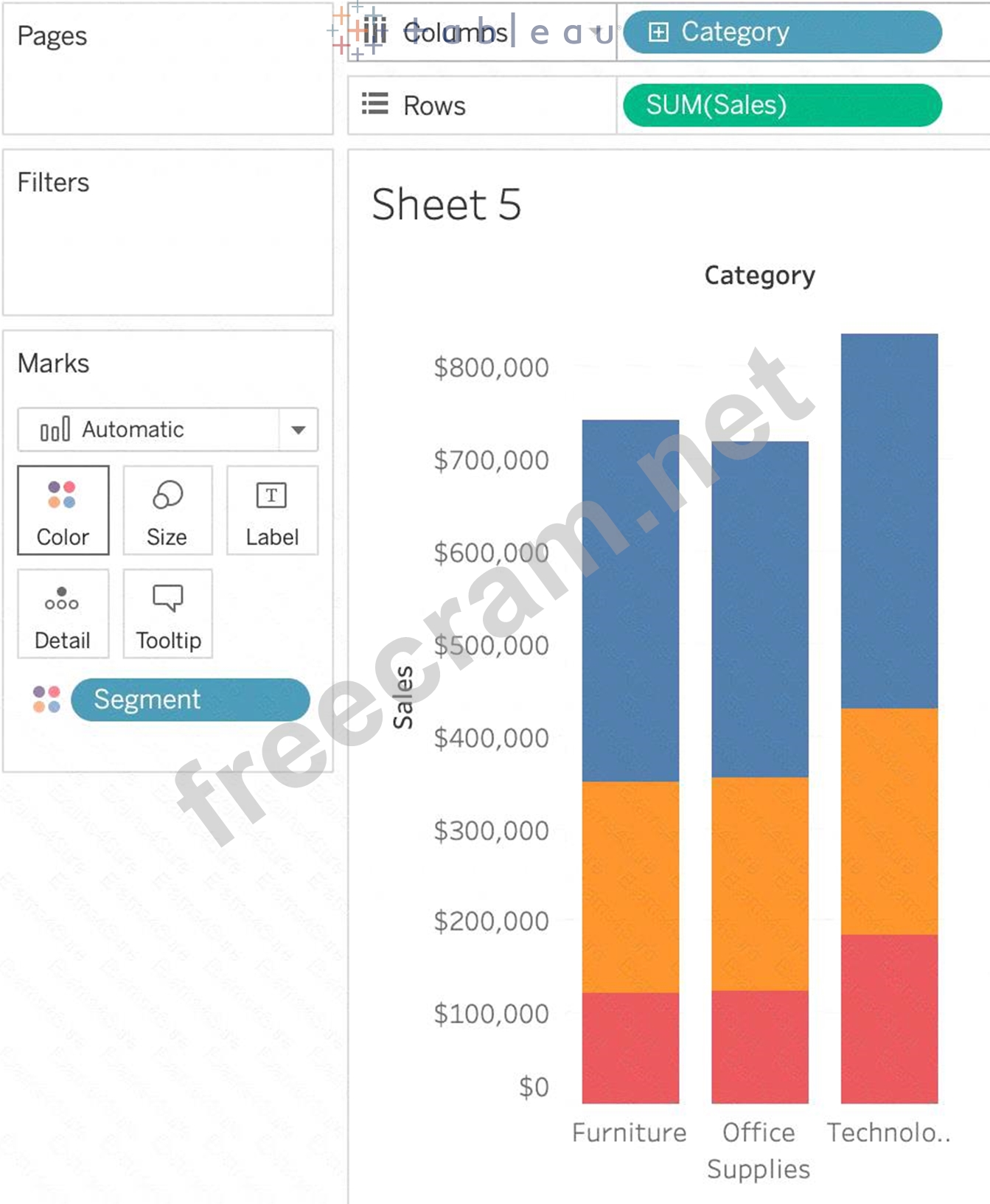 Question 100: You have a bar chart that has a dimension on the Columns she...