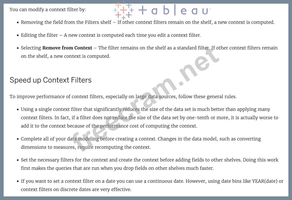 Question 81: Which of the following is a benefit of using a Tableau Data ...