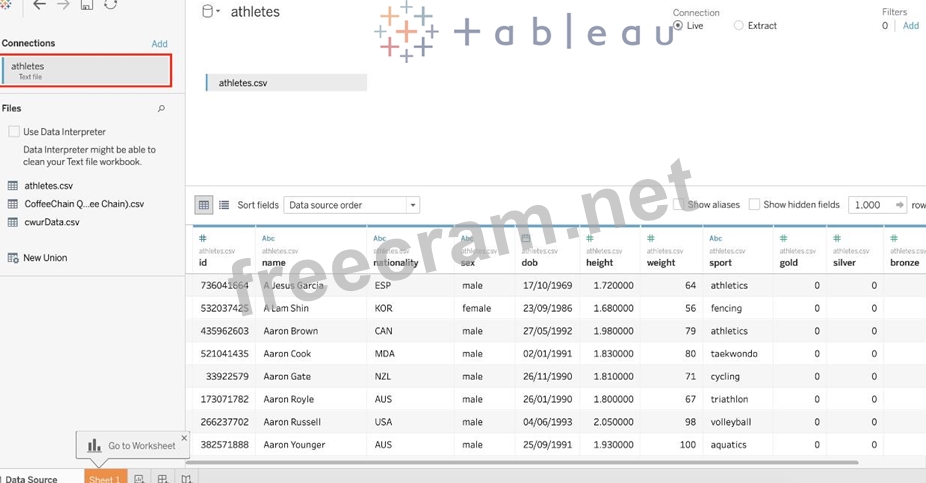 Question 43: You clicked Sheet 1 from the data source page, and now you h...