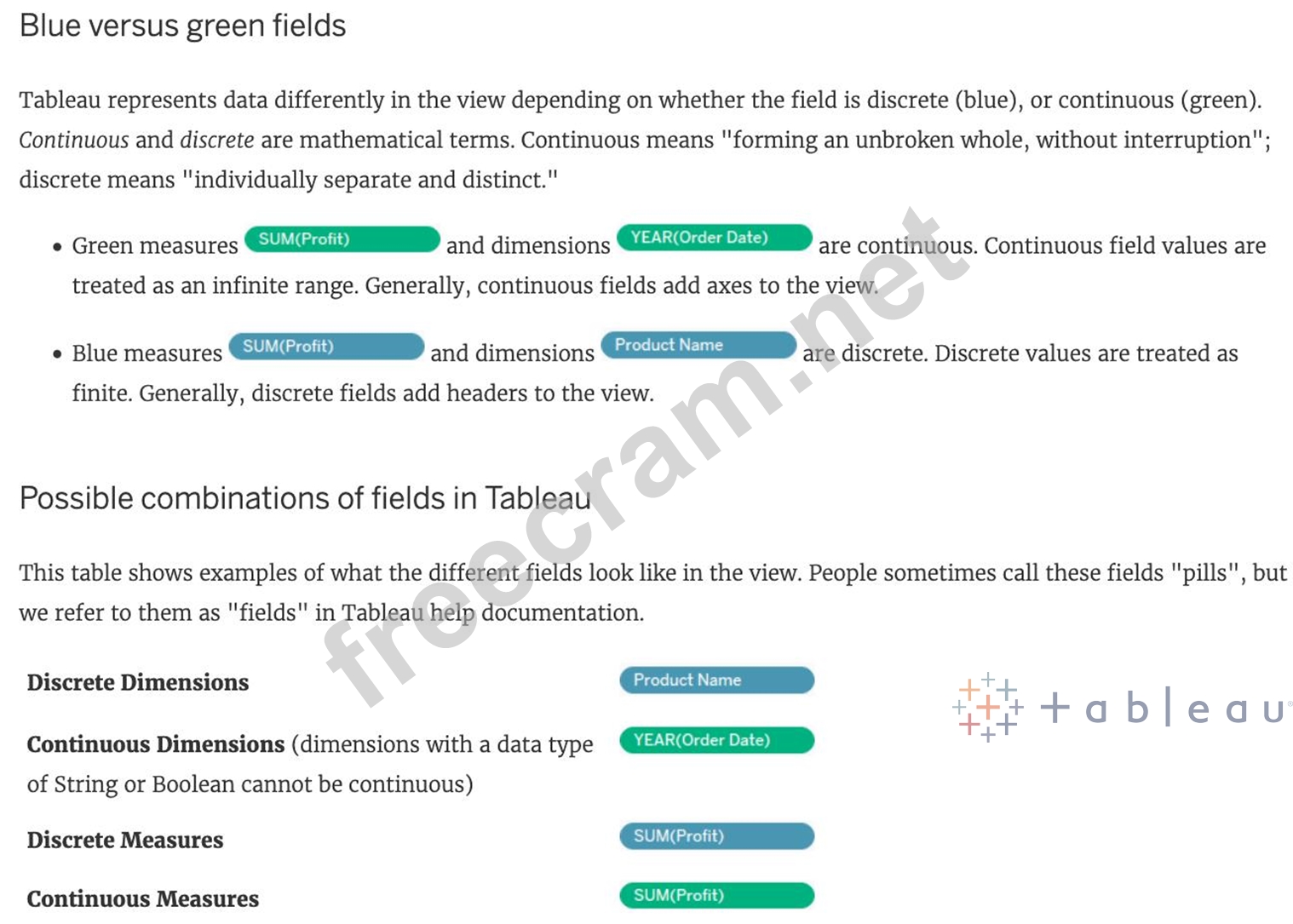 What do the colours Blue and Green represent in Tableau?