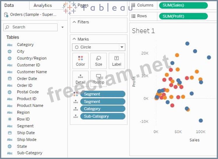 Question 31: How can you add color to marks in the view in Tableau?...