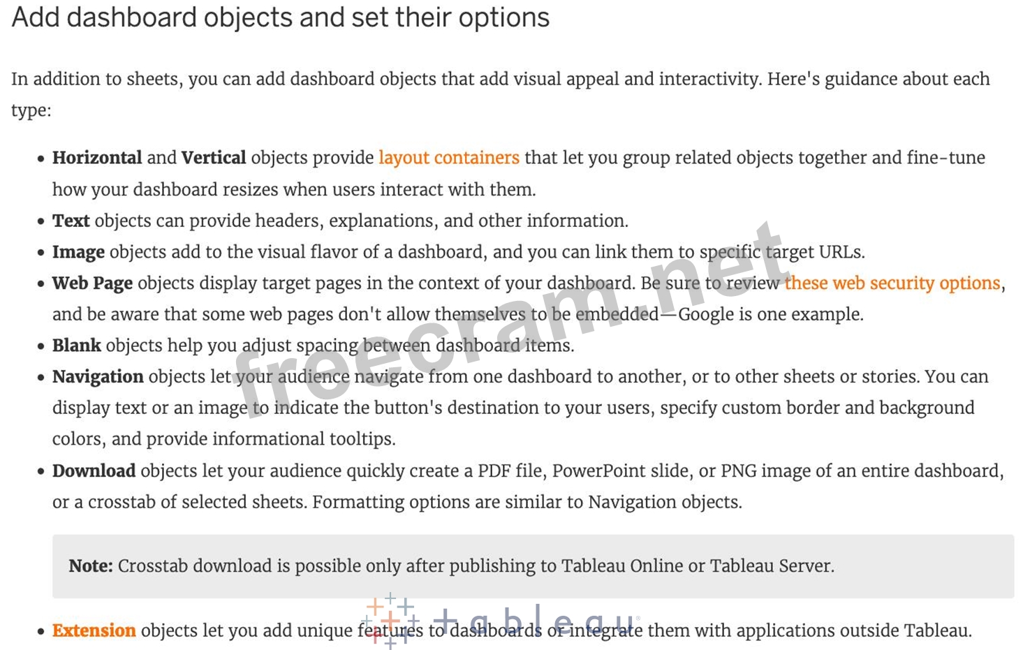 Which of the following are valid objects when creating a dashboard in Tableau? Choose 4.